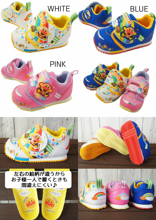アンパンマン 女の子 男の子 子ども キッズ チャイルド 子供靴 スニーカー APM B16 ベビー靴 ファーストシューズ ベビーシューズ マジック 通園 カジュアル ムーンスター 白 青 ピンク evid |2